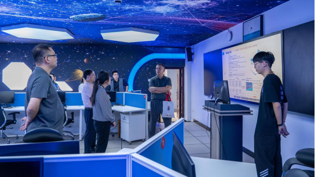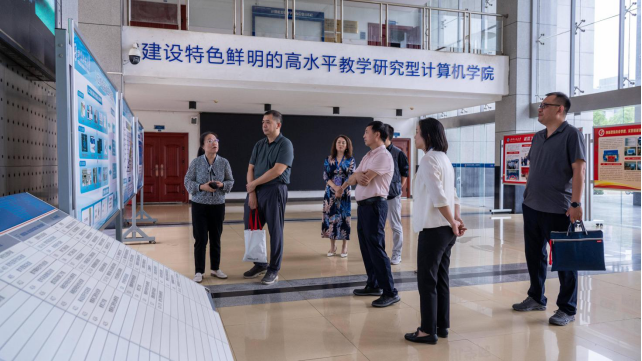 随后,调研组一行来到我校计算机科学与工程学院(人工智能学院)进行参观交流。学院党委书记张炜向调研组介绍了学院的发展历程、学科建设成果以及在人工智能、智能机器人等方向的科研与教学进展。调研组对学院在专业建设与人才培养方面取得的成效表示赞赏,并就未来在自学考试中增设人工智能相关专业的可行性进行了深入探讨。