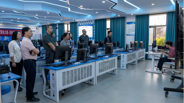 调研组首先来到学校东区专网机考考点,实地考察专网机考试点工作开展情况,详细了解机房设施、网络环境、监控系统及考试组织流程。院长严也舟向调研组汇报了我院作为主考学校在专网机考试点中的组织协调、技术支持与考务管理等方面的具体工作,强调学校高度重视考试安全与信息化建设,积极推动自考工作与现代教育技术深度融合。李骐副处长对我院在专网机考试点中发挥的主考学校作用表示认可,并就技术对接、考务流程优化等提出指导意见。